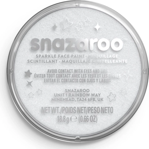 Professionaalne sädelev valge näo- ja kehavärv SNAZAROO praktilises 18 ml pakendis. Pakub kauapüsivaid, eredaid ja küllastunud toone, lihtsat pealekandmist pintsli või käsnaga ning on ohutu ja mittetoksiline, sobib ka tundlikule nahale. Kergesti mahapestav vee ja seebiga, ideaalne pidudeks, karnevalideks, halloweeniks ja lastepäevaks.