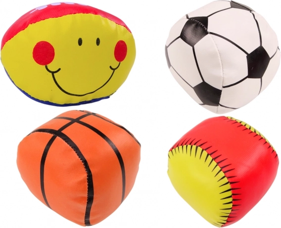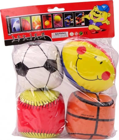 Lõbus 4 pehme palli komplekt lastele pakub turvalist mängu ja erinevate spordialade õppimist – jalgpall, korvpall, pesapall ja ragbi. Iga pall on pehme ja ohutu, sobilik ka kõige pisematele sportlastele. Praktiline läbipaistev kott teeb kaasavõtmise lihtsaks nii mänguväljakule, parki kui ka väljasõitudele. Suurepärane motoorika, koordinatsiooni ja meeskonnatöö arendamiseks.