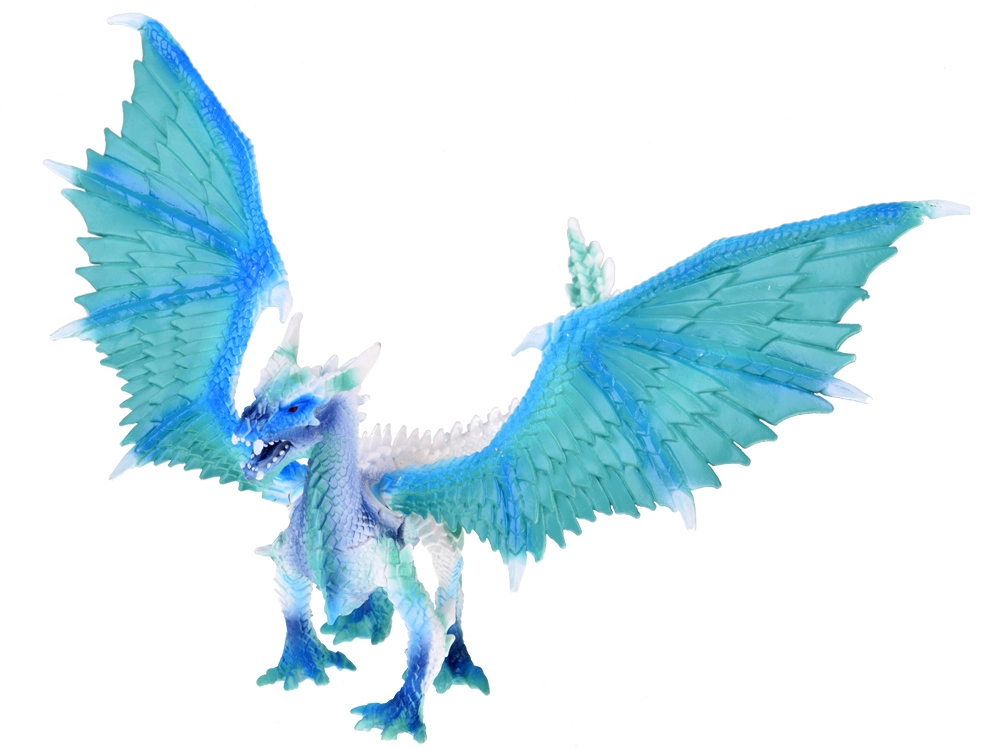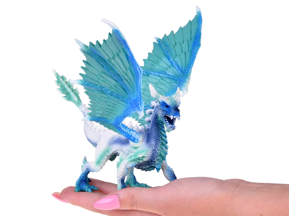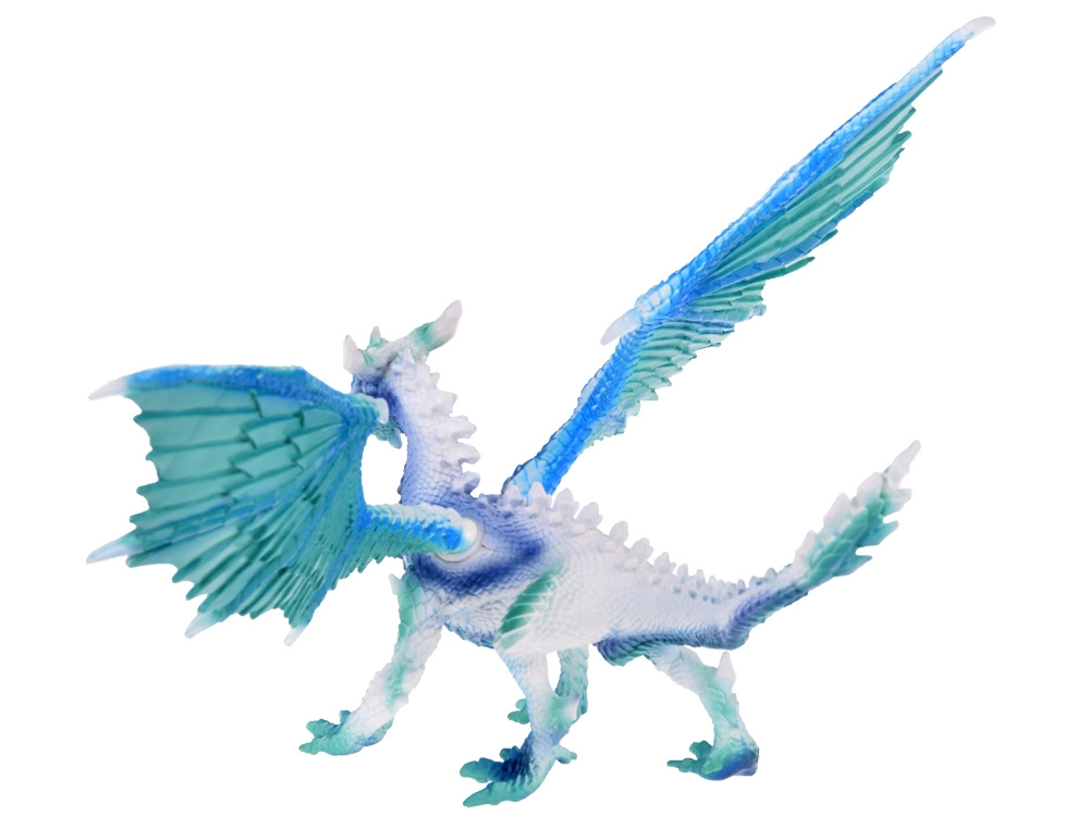Imposantne jäädraakoni figuur sinakas‑valges toonis paistab silma täpse teostuse, realistlike detailide ja liikuvate tiibadega. Vastupidav plastmaterjal, käsitsi maalitud detailid ja stabiilne asend teevad sellest suurepärase lisandi nii mänguks kui ka kollektsiooni.