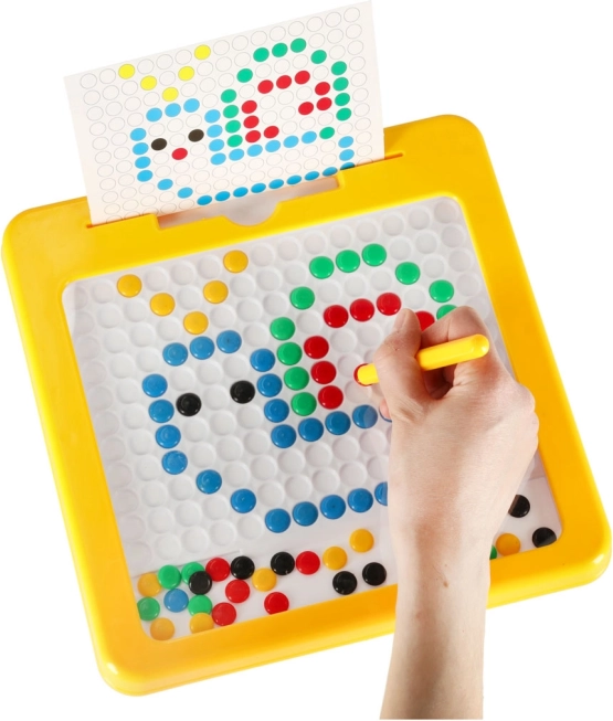 Magnetiline joonistustahvel mosaiigiga on suurepärane didaktiline abivahend, mis on inspireeritud Montessori põhimõtetest. Lapsed tõmbavad ja liigutavad magnetpliiatsiga tahvli sees olevaid värvilisi “nuppe” ning panevad neist kokku lihtsamaid ja keerukamaid motiive. Kaasas on šabloonkaardid, mis lihtsustavad alustamist ja pakuvad inspiratsiooni.