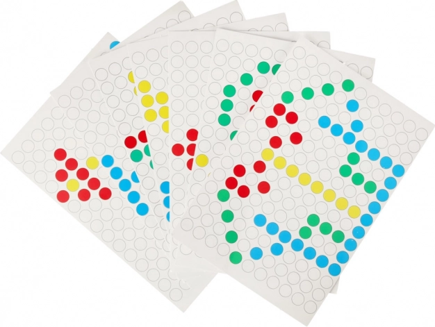 Komplektis on 7 kaartideks vormitud šablooni, mis aitavad lastel pilte samm-sammult luua ning toetavad samal ajal värvide ja mustrite äratundmist.