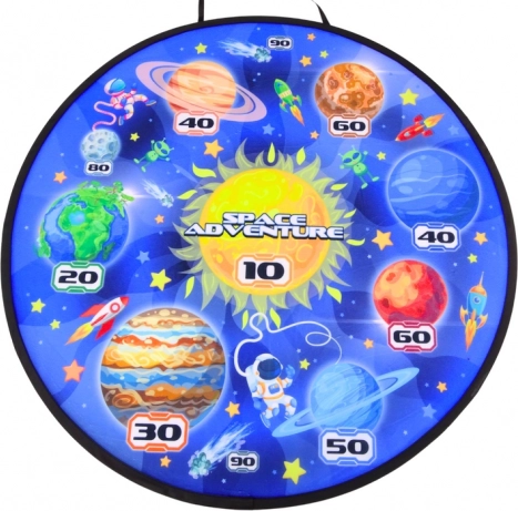 Space Adventure muudab iga lastetoa väikeseks laskerajaks galaktilise atmosfääriga. Suur tekstiilist sihtmärk värvilise kosmoseteemalise kujunduse ja selgelt märgitud punktiväärtustega innustab täpselt sihtima ning numbreid õppima. Ohutud takjaga vahtmoonad ja pallid püsivad sihtmärgil ilma teravate otsteta, nii et lapsed saavad mängida muretult.