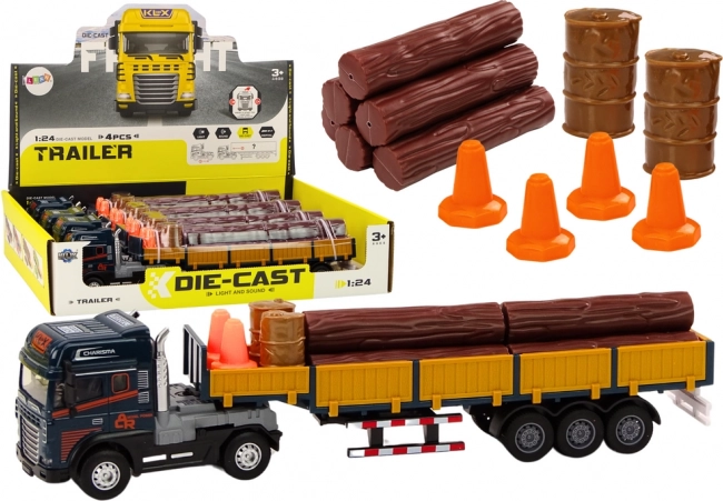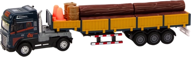 Realistlik 1:24 mõõtkavas veokimudel pakub sinist kabiini, lahtühendatavat haagist eemaldatavate külgseintega ning puidust palkide laadungit. Veel lõbusamaks mänguks on valgus- ja heliefektid (mootori käivitus, tagurdamine) ning vabajooks/nööritõmme edasisõiduks. Komplektis on ka teisaldatavad koonused ja kaks tünni laadimise ja “tööplatsi” turvamise stseenideks. Sertifikaadid CE, vastavus EN71-le, sobib alates 3. eluaastast.