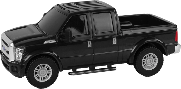 Must Ford F-350 Pickup on stiilne mudel, millel on autentsed detailid, nagu hõbedased kereaktsendid ja toonitud aknad. See mudel köidab nii lapsi kui ka täiskasvanud autofänne oma realistliku disainiga.