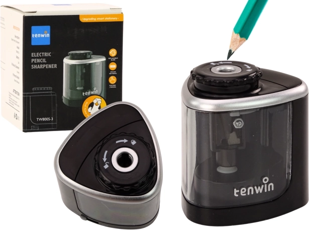 Kompaktne elektriline teritaja elegantses mustas värvitoonis pliiatsitele ja värvipliiatsitele läbimõõduga 6–8 mm. Pakub nii elektrilist kui ka manuaalrežiimi, täpset teritamist ning turvalukuga sahtlit juhusliku avanemise vältimiseks. Komplektis on varunuga pikema tööea tagamiseks. Ideaalne kooli, kontorisse ja koju.