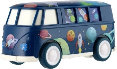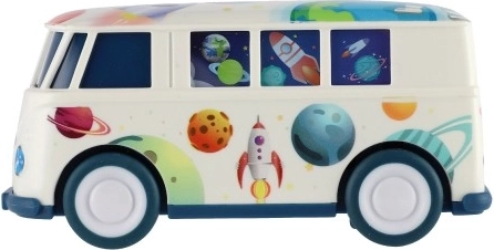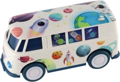 Kosmiline plastist hoorattaga buss on täiuslik täiendus iga väikese juhi kollektsiooni. See on 13 cm pikk ja oma elava disainiga paelub iga last. Valmistatud vastupidavast plastikust ning saadaval kahes värvitoonis, mis lisab selle atraktiivsust. Buss on loodud toetama laste loovust ja kujutlusvõimet mängu kaudu.