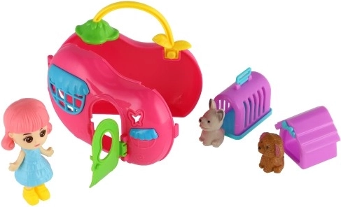 See värviküllane komplekt toob laste mängu fantaasia ja loomade eest hoolitsemise maailma. Sangaga kaasaskantav majake on lihtne kokku panna ja kaasa võtta, nukk saab selles palju mängida ning kaks lemmikut teevad sellest veelgi lõbusama tegevuse. Tänu kompaktsetele mõõtmetele sobib komplekt hästi ka reisidele.