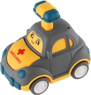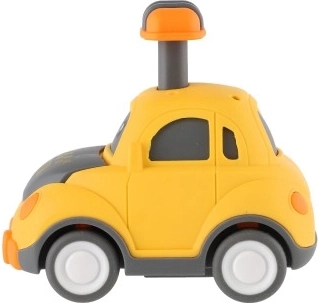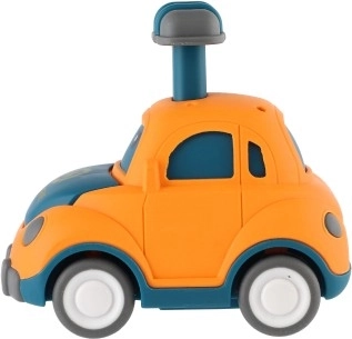 Armas näoga plastikauto rõõmustab iga väikest võidusõitjat. Piisab, kui vajutad katusel olevat hooba ja auto hakkab ise sõitma tänu hoorattale. Kompaktne 9 cm suurus sobib ideaalselt väikesele käele, turvaline teostus ja neli erinevat varianti (politsei, kiirabi, takso jm) arendavad fantaasiat ja motoorikat. Sobib lastele alates 3. eluaastast.