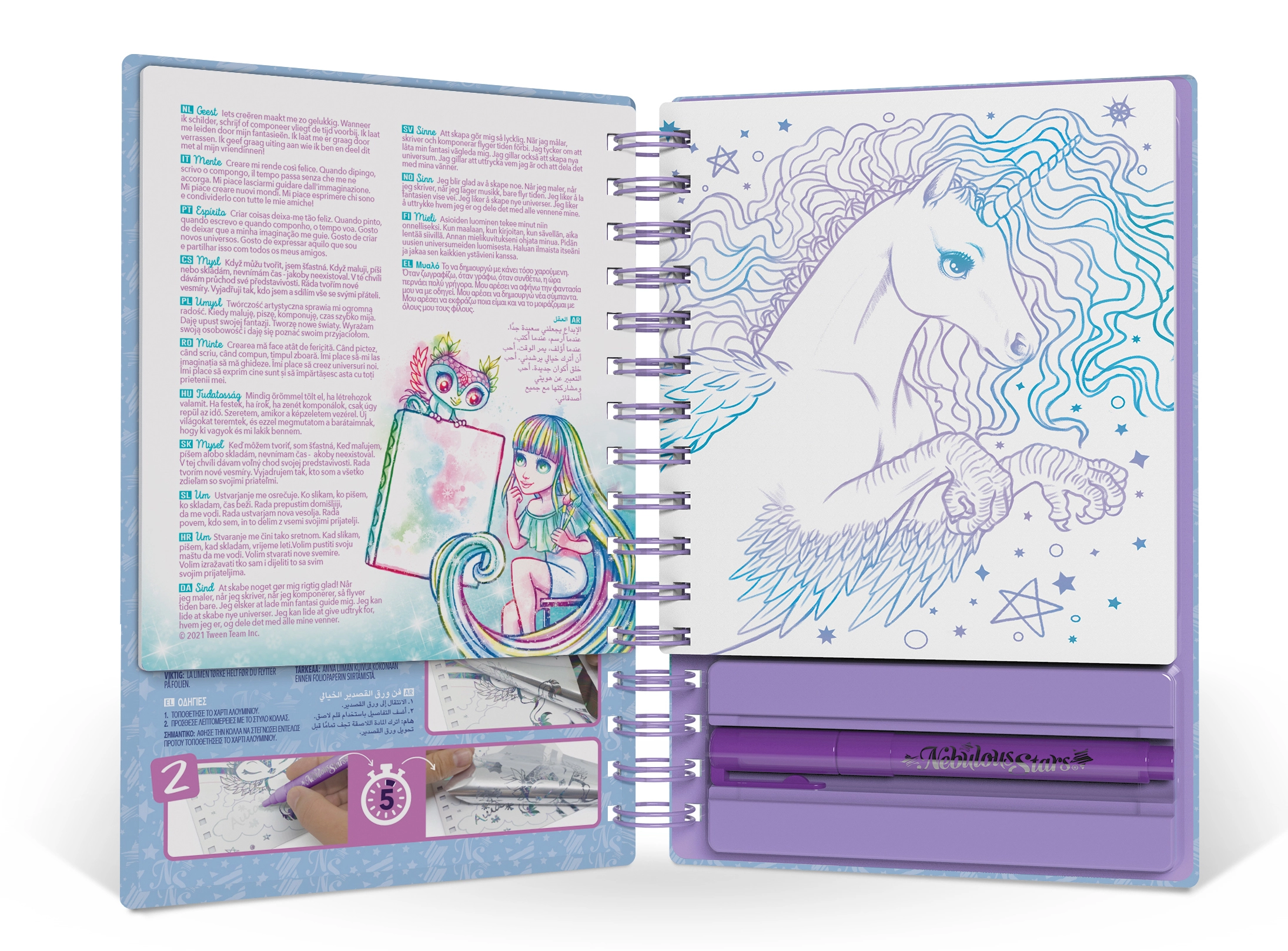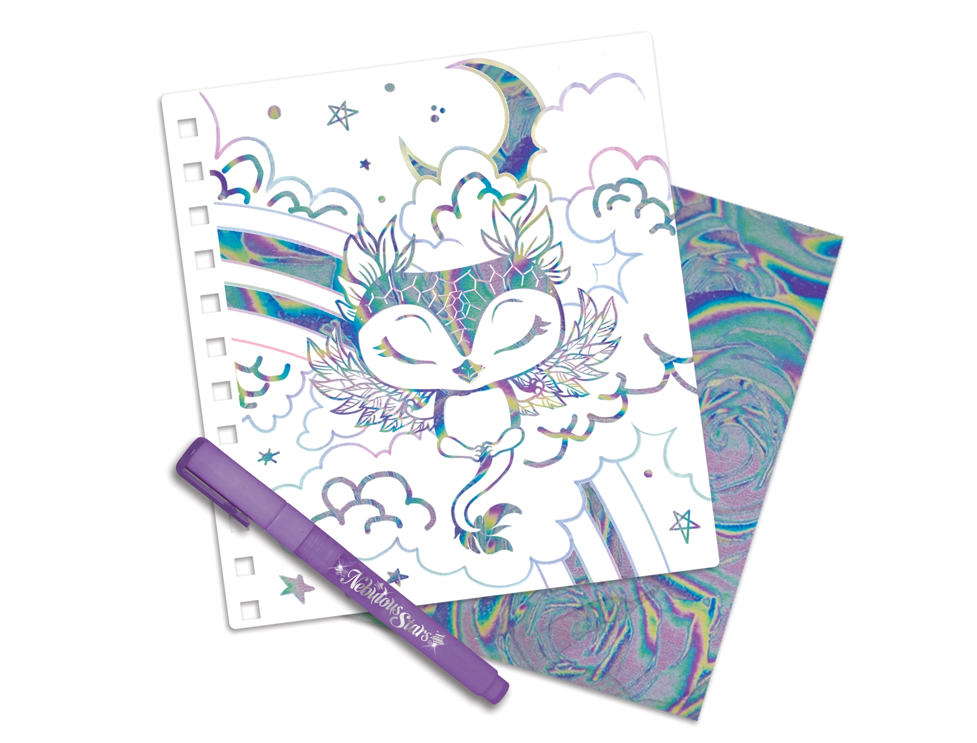 See omanäoline kunstikomplekt ühendab võluva NEBULOUS STARS maailma lihtsa dekoreerimistehnikaga, kasutades metallikfooliume. Lihtsalt kanna liim pliiatsiga, aseta foolium peale ja tõmba õrnalt ära – tulemuseks on särav, sädelev efekt, mis muudab iga pildi väikeseks kunstiteoseks.