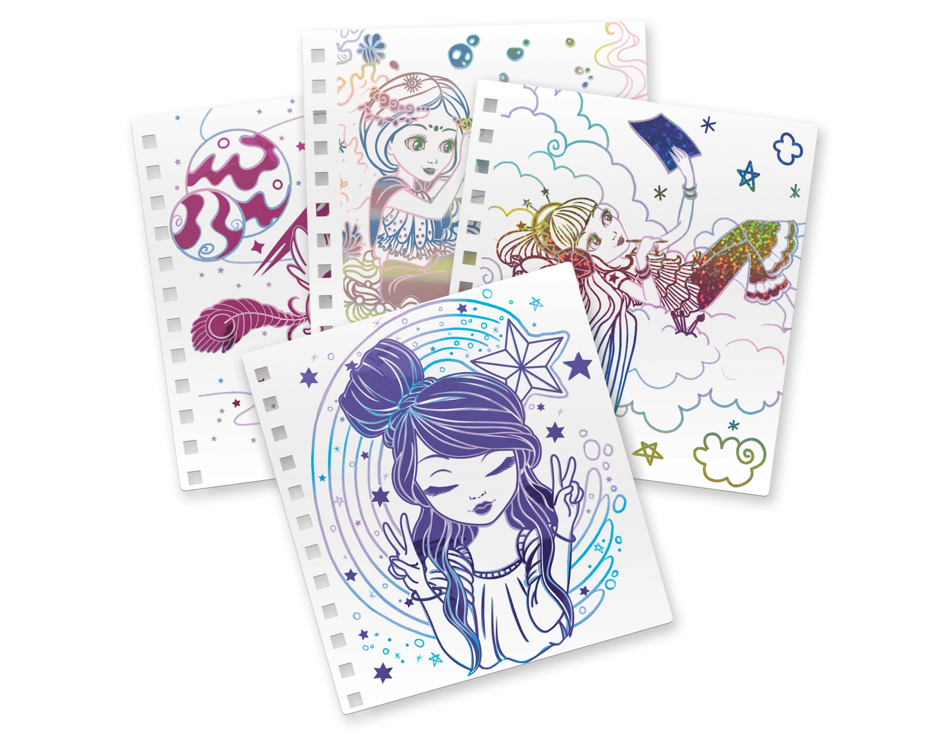 Komplekt pakub rikkalikku sisu: 12 eeltrükitud fantaasiamotiiviga pilti, 12 fooliumlehte erinevate efektidega ning üksikasjalikud juhised. Lapsed arendavad peenmotoorikat, kannatlikkust ja loovust ning loovad kaunistusi, mis sobivad nii väljapanekuks kui ka kinkimiseks.