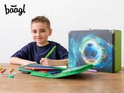 Kokkuvolditav koolikohver Baagl on ideaalne valik väikestele jalgpallifännidele tänu vastupidavale disainile ja stiilsele jalgpallimotiivile.