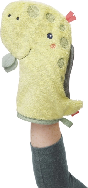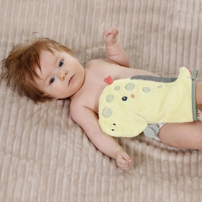 Muutke vanniskäik lemmikrituaaliks rõõmsa dinosauruse kujulise pesukindaga. Pehme frotee on mõnus puudutusele ja õrn nii imikute kui suuremate laste tundliku naha vastu. Mänguline motiiv innustab lapsi kaasa töötama ja pesemine on lihtsam.