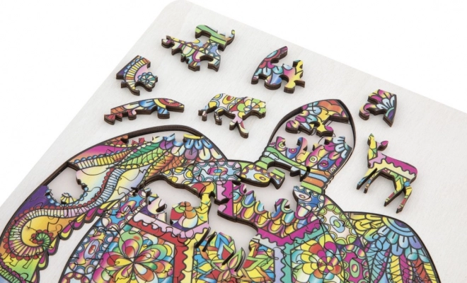 Puidust kontuurpusle kilpkonna kujul erikujuliste tükkidega on ideaalne nii lastele kui ka täiskasvanutele. See sisaldab loomade ja esemete kujulisi tükke, mis lisavad atraktiivsust ja lõbusust.