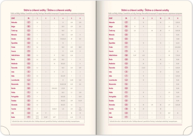 - Sisaldab nii Tšehhi ja Slovaki kui ka rahvusvahelisi pühi.