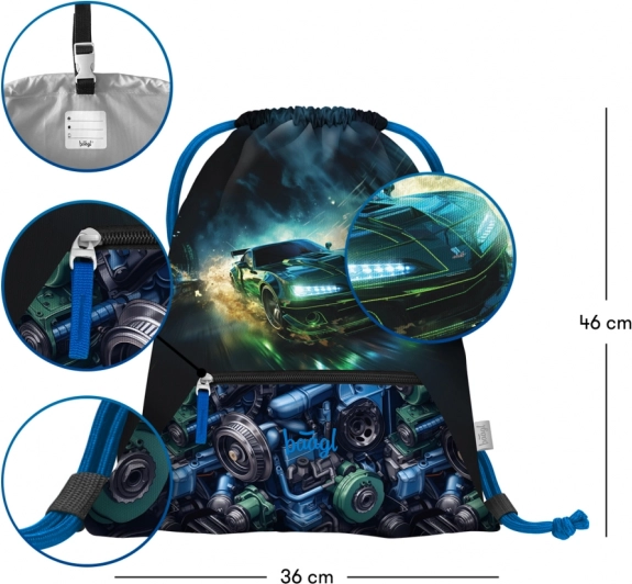 Baagl Zippy võidusõiduauto koolikomplekt esimesteks kooliaastateks hõlmab ergonoomilist ranitsat koos reguleeritava ERGO ADJUSTABLE SYSTEM seljasüsteemiga, ühekorruselist pinali ja taskuga kotikest. Ranitsal on klapiga avamissüsteem, praktiline korraldaja, helkurelemendid ja veekindel materjal igapäevaseks töökindluseks.