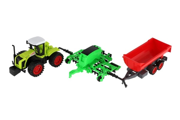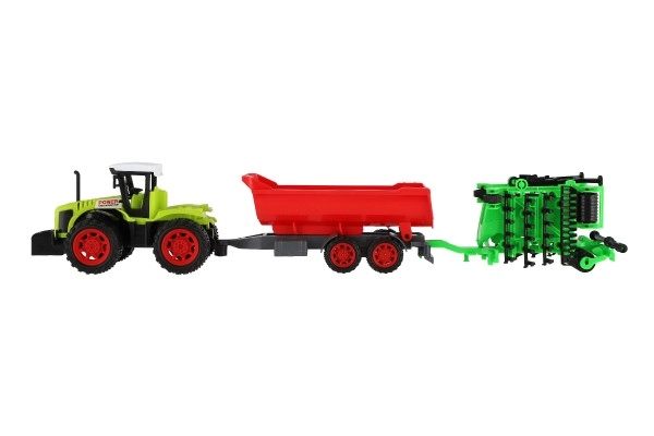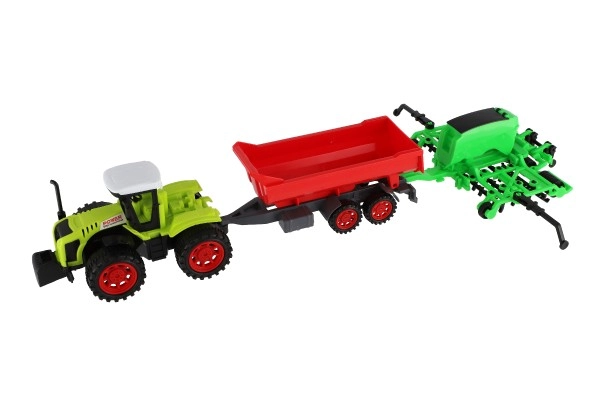 Ere rohelise traktori ja kontrastse punase haagise ning väravatega köidab mänguasi laste tähelepanu ja toetab nende loovust.