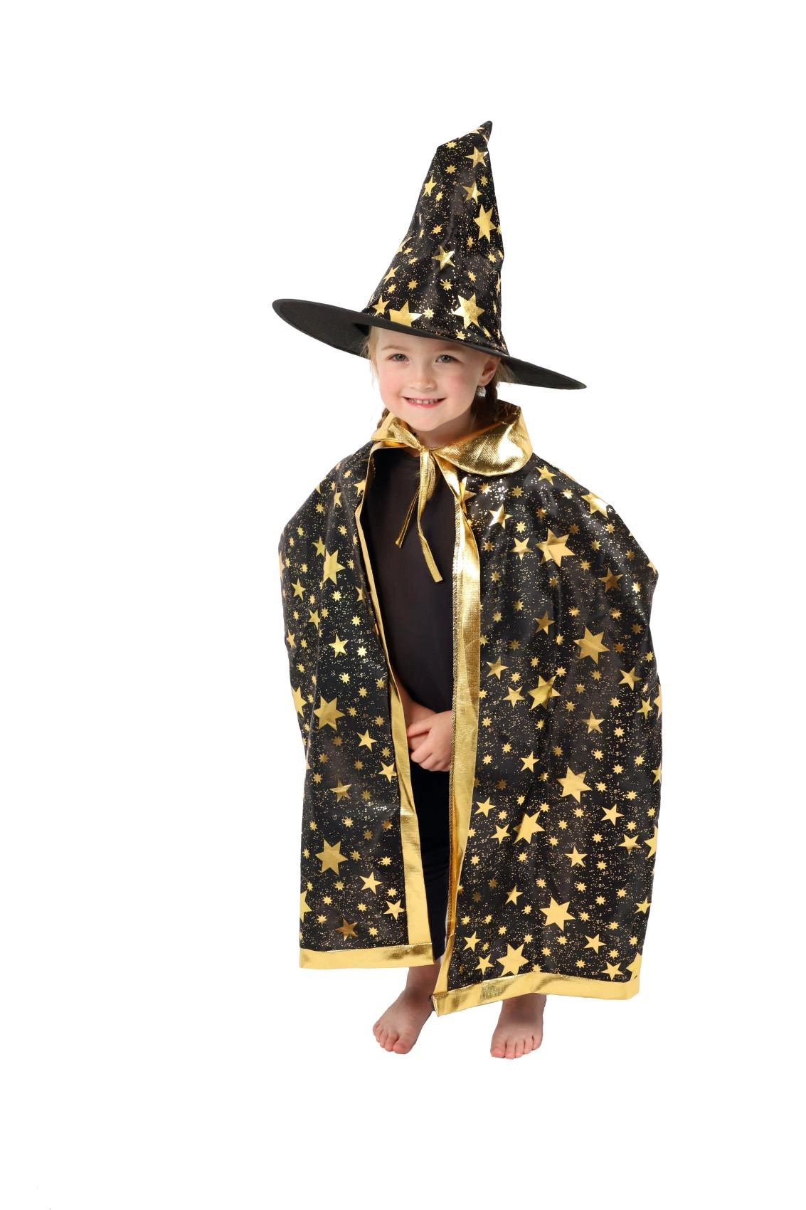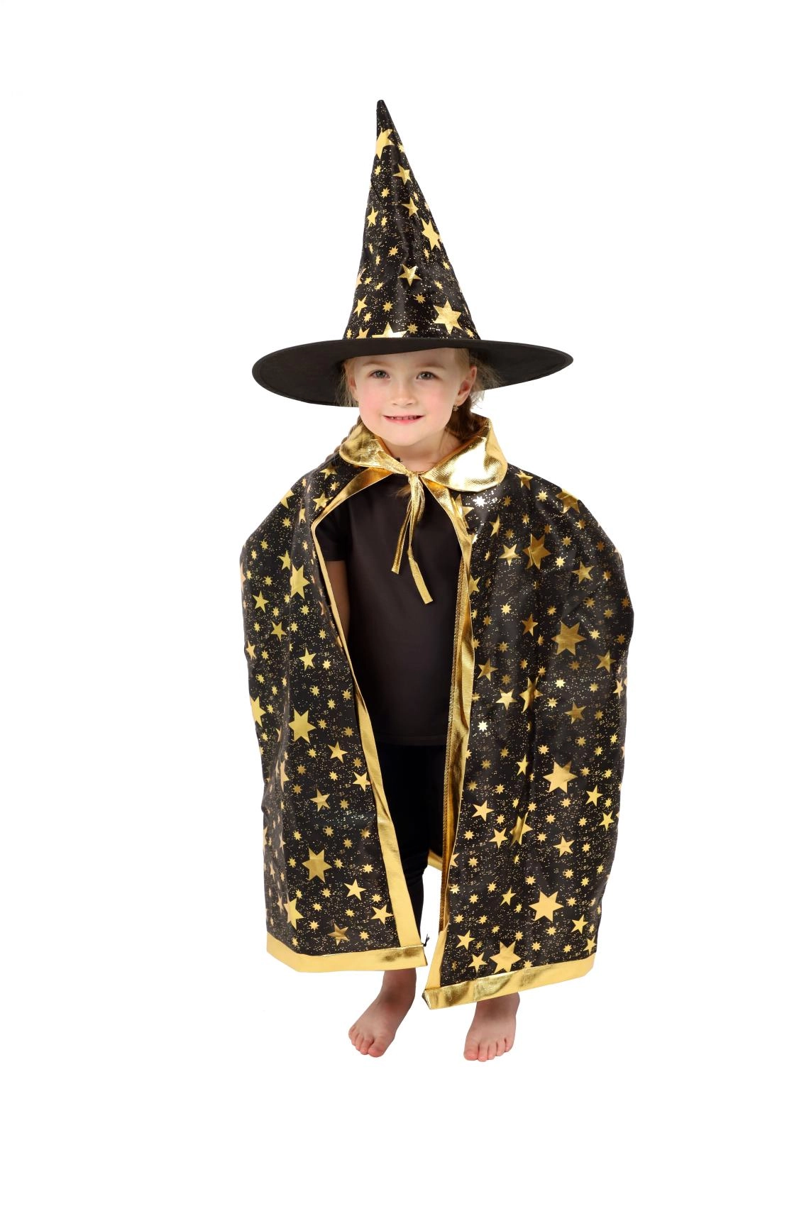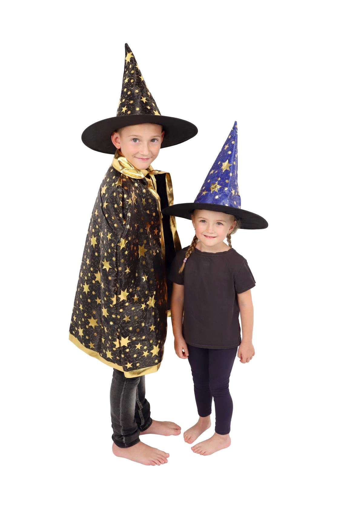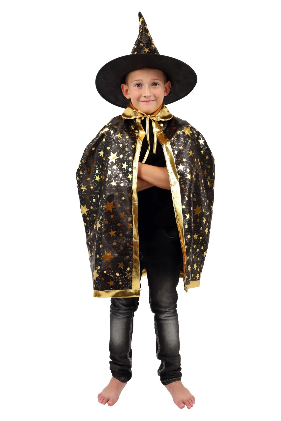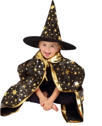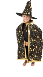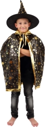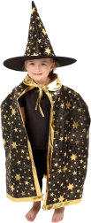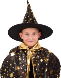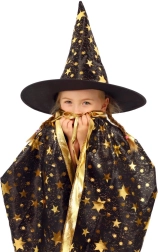 Muuda oma laps väikseks võluriks. See must‑kuldne, tähtedega trükiga komplekt sisaldab pilkupüüdvat nõiakübarat ja sobivat keepi, mis sobivad suurepäraselt laste karnevalidele, kostüümipidudele ja Halloweeni tähistamiseks. Tänu kergetele materjalidele on neid lihtne kanda ning need võimaldavad vaba liikumist mängude ja esinemiste ajal.