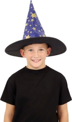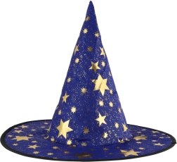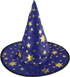 Loo koju võluv õhkkond selle laste nõiakaabuga sinikuldse viimistlusega. Kerge materjal, lai serv ja kõrge terav kuju koos sätendavate tähtedega tagavad pilkupüüdva välimuse karnevalil, halloweenil ja temaatilistel pidudel.