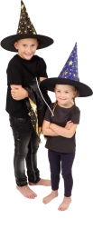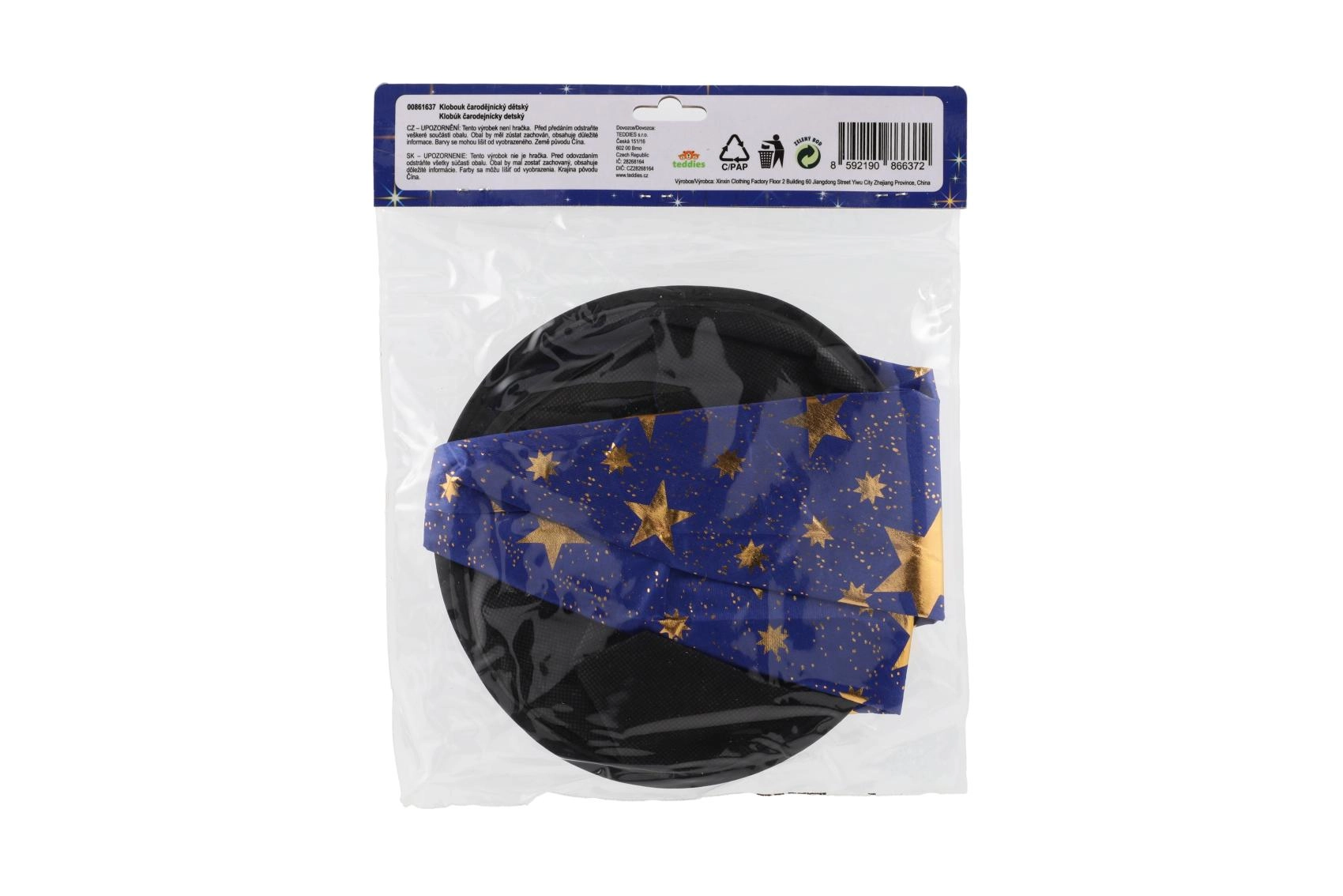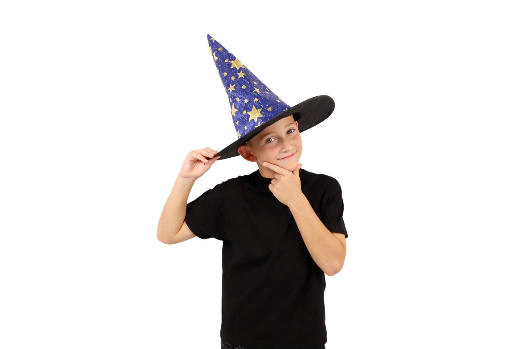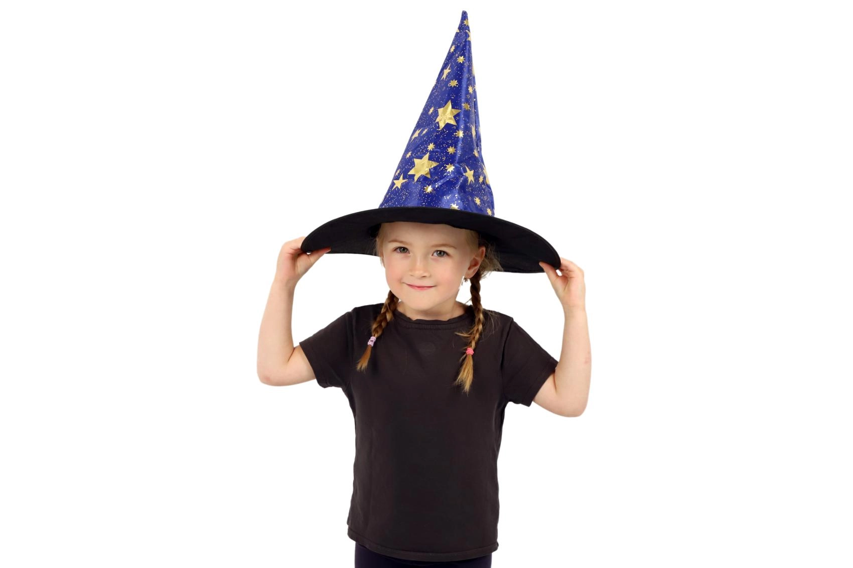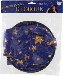 See sinikuldne nõiakaabu tähemustriga muudab iga lapse väikseks maagiks. Tänu kergelt tekstiilile on seda meeldiv kanda, see hoiab kuju ja täiendab suurepäraselt kostüümi karnevalil, maskiballil või teatrilaval.