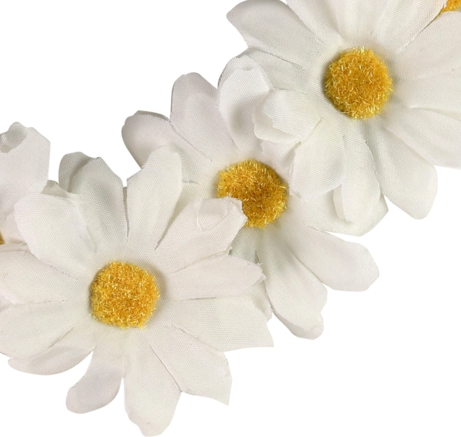 See kaunis karikakardega peapael lisab hetkega sära nii kostüümile kui ka igapäevasele suvisele riietusele. Elastne kumm tagab mugava kandmise kogu päeva vältel, samal ajal kui rikkalikud õied loovad efektse ja rõõmsa välimuse.