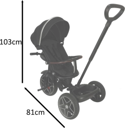 Kui laps kasvab ja on valmis iseseisvaks sõiduks, saab turvaelemendid eemaldada ning muuta selle klassikaliseks kolmerattaliseks. Neli erinevat meloodiat kõlarist lisavad igale sõidule lusti. Toode on pakendatud keskkonnasõbralikku kartongpakendisse.