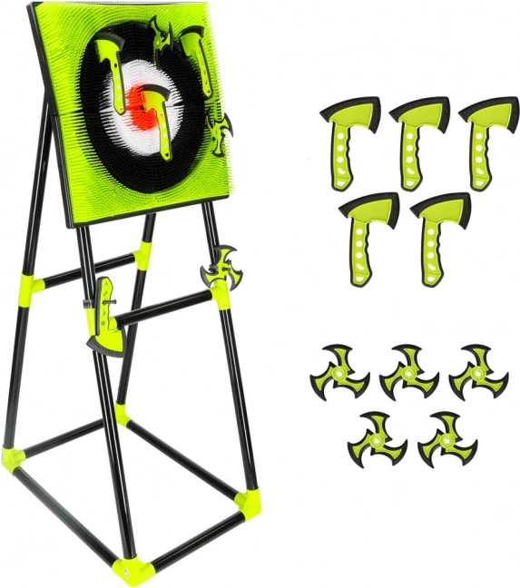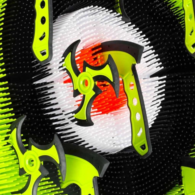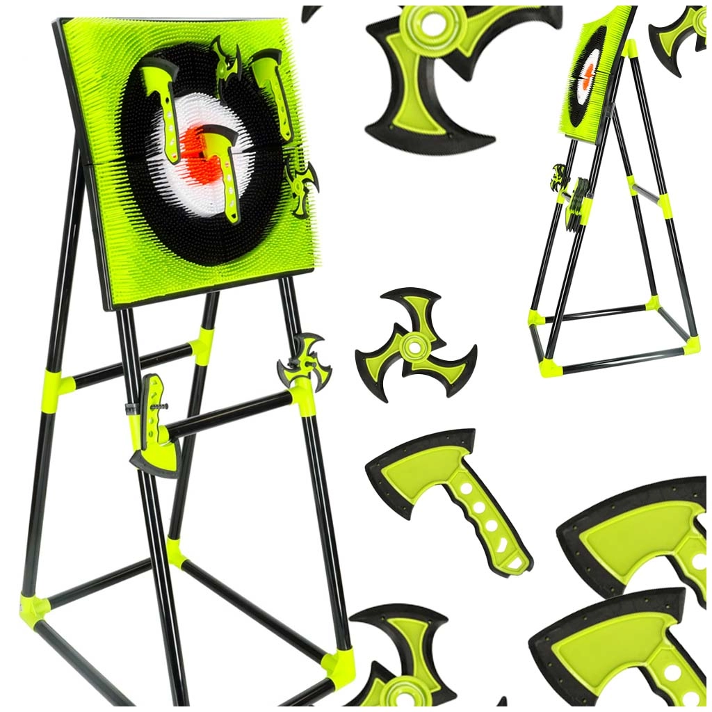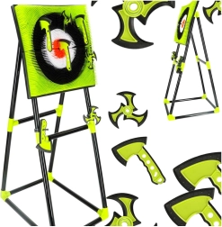 Avastage ninjamaailmast inspireeritud tempokas märklaudmäng – silikoonist kirveste ja šurikenidega harjutavad lapsed turvaliselt sihtimist ja keskendumist. Tugev iseseisev raam alusega võimaldab kiiret kokkupanekut ja tarvikute mugavat hoiustamist.
