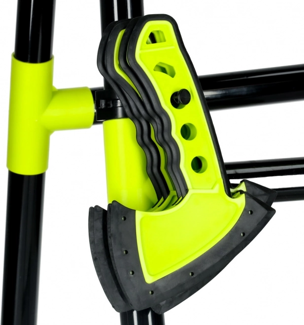 Vastupidav konstruktsioon rohelis-mustade ühendustega seisab iseseisvalt ning tänu hoidikutele on tarvikud alati käepärast.