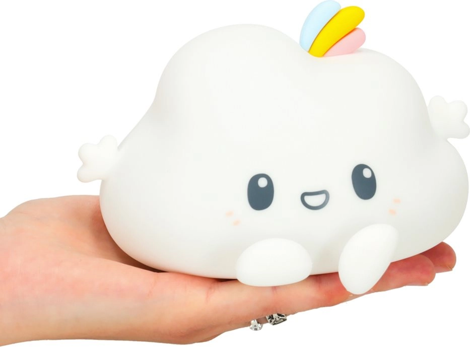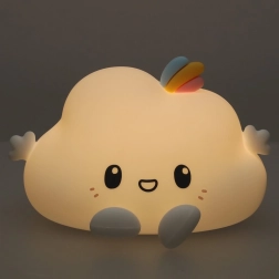 Armas pilvekujuline öölamp silikoonpinnaga rõõmustab iga last. See pakub 3 valgustusrežiimi (soe valge, RGB vahelduvad värvid, ühevärviline valgus), puutetundlikku juhtimist, sisemist 1200 mAh akut tööajaga 9–10 tundi ning USB-laadimist. Pehme, meeldiv valgus loob rahustava atmosfääri hõlpsaks uinumiseks.