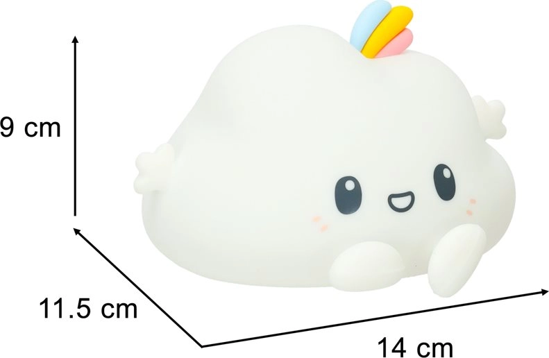 See laste öölamp naeratava pilvekese kujul toob tuppa rahu ja hubasust. Ülipehme silikoon on meeldiv puudutada ja lastele ohutu, samas kui õrn valgus aitab ületada pimedusehirmu ja soodustab rahulikku und.