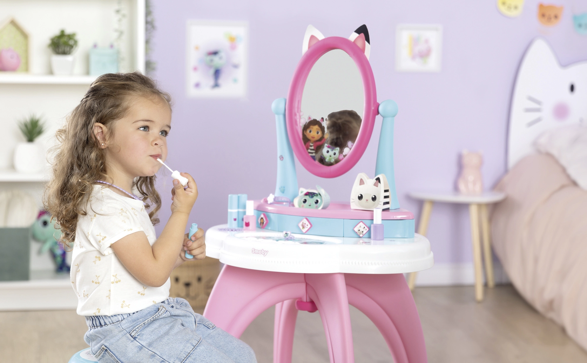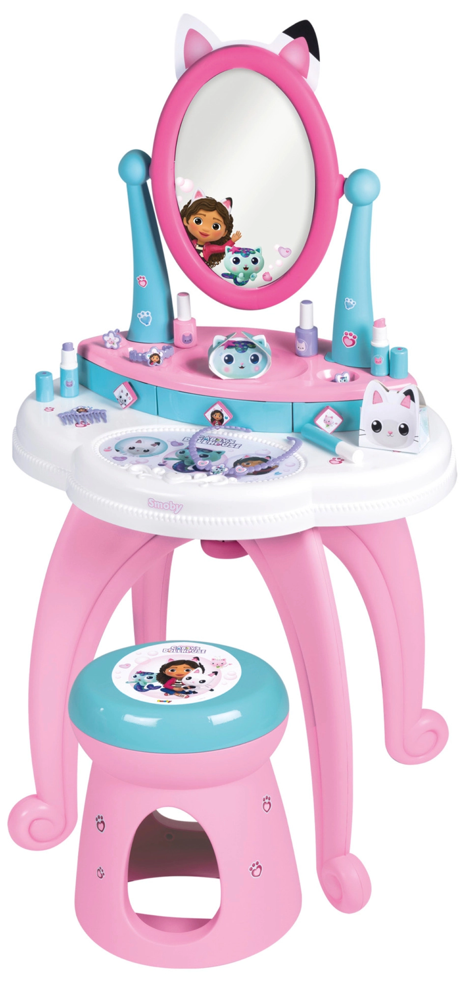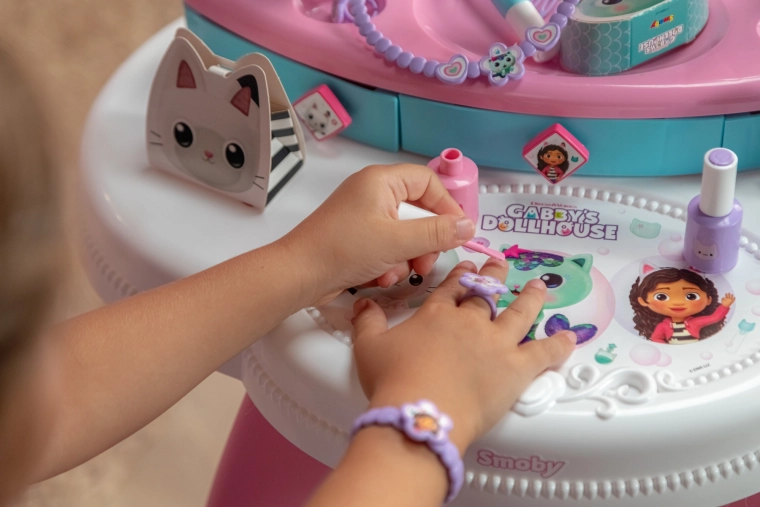 Laste tualettlaud, mida on inspireerinud menukas sari GABBY’S DOLLHOUSE, muudab toa väikeseks ilusalongiks. Tänu suurele reguleeritavale peeglile, kolmele sahtlile ja rikkalikule lisandite komplektile on kõik käeulatuses ning mäng tundub realistlik ja turvaline.