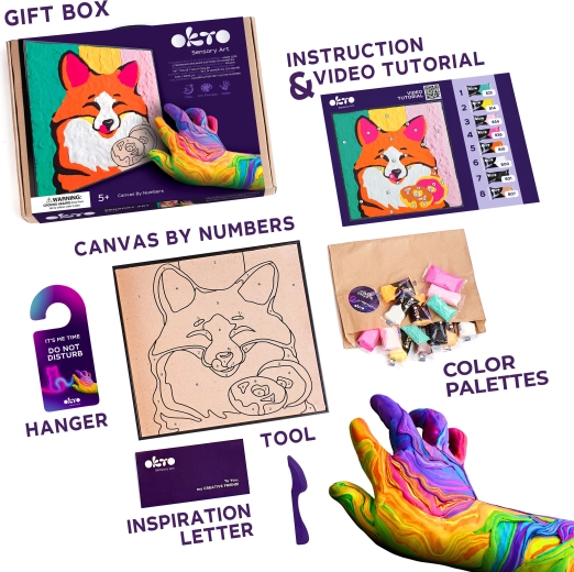Avastage loomisrõõm OKTO rebase kunstikomplektiga. See ühendab sõrmedega maalimise ja õhukuivavast massist modelleerimise, nii et saate hõlpsalt luua reljeefse, originaalse pildi ruudukujulisel 29 × 29 cm lõuendil. Komplektis on pildiline juhend, mis juhendab teid samm-sammult.