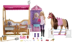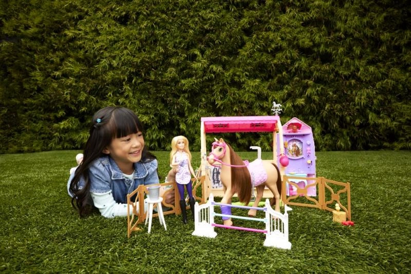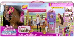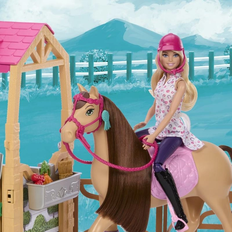 Mängi terve päeva kestvat ratsutamispäeva Barbie Ultimate Stable komplektiga, mis pakub 360° mängukeskkonda ja rohkelt hobusehoolduse tarvikuid. Lapsed saavad aidata Barbie nukul toitmisjaamas, puhastada ja harjata hooldusalas, harjutada takistuste ületamist ning seejärel uhkusega paigutada lindid trofeeseinale. Komplektis on ka roosa „plug and play” aed ning võimalus tall lihtsalt kokku voltida mugavaks hoiustamiseks.