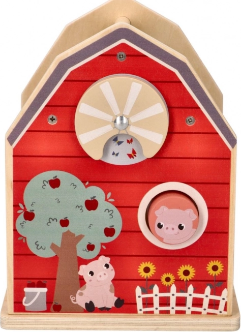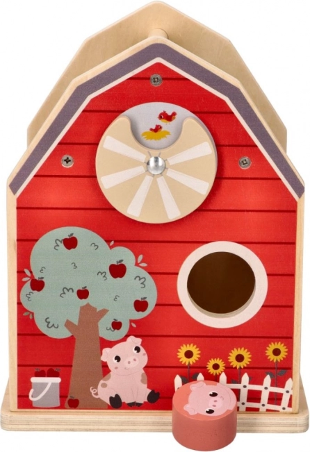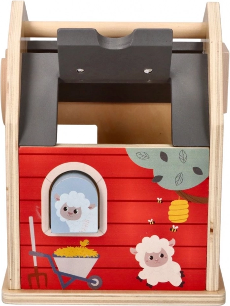 Puidust talu-kujundite sorteerimiskast on ideaalne mänguasi väikestele lastele, kes õpivad koordinatsiooni ja kujundite äratundmist. Talu konstruktsioon avatavate uste ja katusega võimaldab lihtsat ligipääsu kujunditele ning pakub lõputuid võimalusi interaktiivseks mänguks. Lapsed õpivad kujundeid ja värve eristama, harjutades samal ajal peenmotoorikat.