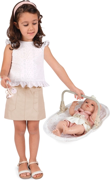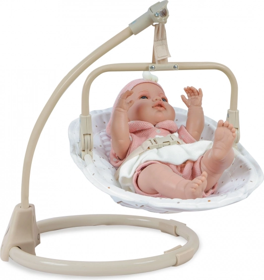 Tänu eemaldatavale ja kahepoolsele istmele saab toodet kasutada söögitoolina koos kandikuga, rahustava kiiguna või eraldi kandekorvina. Tugev metallraam on ühendatud kergete plastdetailide ja meeldiva tekstiilkattega, pakkudes nukule mugavust ja lihtsat hooldust.