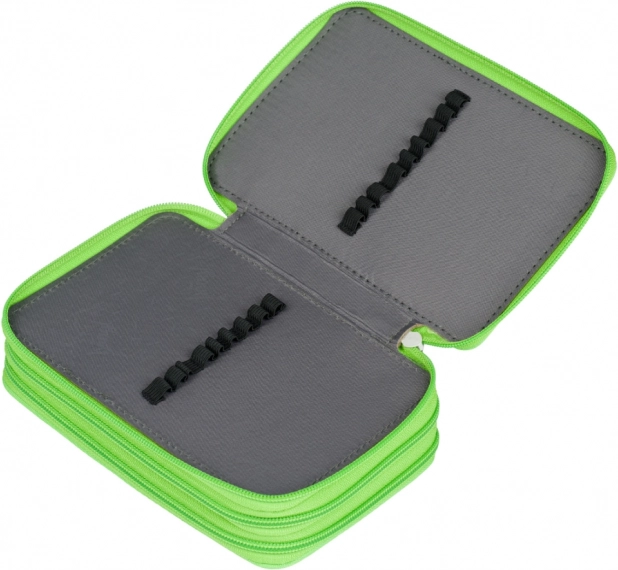 Baagli koolipinal on ideaalne kaaslane igale koolilapsele. Kolmekorruseline jaotus võimaldab kõigi kirjutusvahendite hõlpsat organiseerimist. See on varustatud kohandatud kummipaeladega, mis sobivad ka jämedamate värvipliiatsite ja markerite jaoks. Lisaks tagab tugevdatud selg lihtsa käsitsemise sulgemisel.