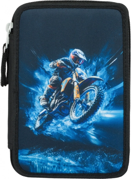 Pinal paistab silma sportliku motokrossi disainiga sinimustades toonides ning sulgub kvaliteetsete tõmblukkudega turvaliseks hoiustamiseks. Sisemised elastsed hoidjad on kohandatud ka jämedamatele kirjutusvahenditele, nii et kõik püsib omal kohal.