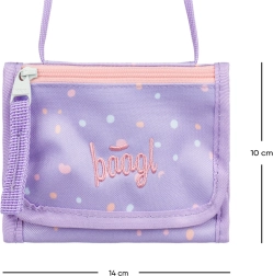 Läbimõeldud jaotus takjakinnituse ning sisemise lukuga münditaskuga hoiab sularaha, kaardid ja võtmed korrastatult ja turvaliselt. Stiilne lilla disain täppidega ja diskreetse logoga annab rahakotile moodsa ilme, mis sobib suurepäraselt nii kooli kui ka vaba aja varustusega.