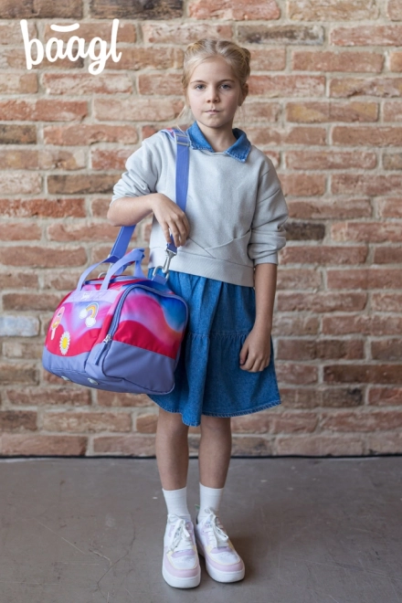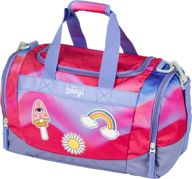 Kerge ja stiilne BAAGL laste spordikott vikerkaare motiiviga on ideaalne huviringidesse, kehalise kasvatuse tundi ja ka käsipagasiks. Kott pakub ruumikat põhisahtlit laia kaanega, eraldi jalanõutaskut, eemaldatavat ja reguleeritavat rihma ning tugevdatud veekindlat põhja. Sujuva avamise tagavad usaldusväärsed YKK tõmblukud ning helkurelemendid lisavad ohutust.