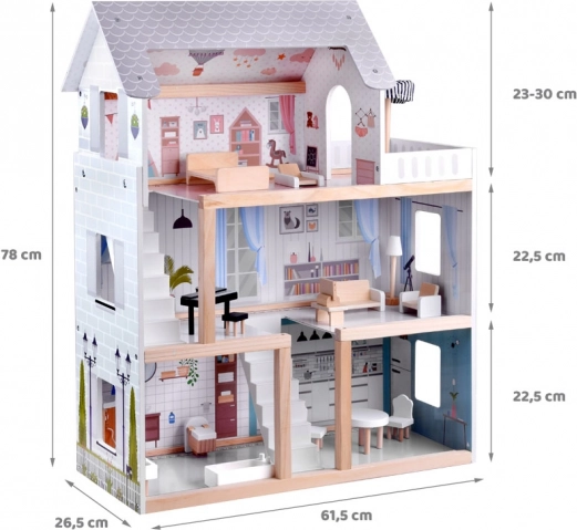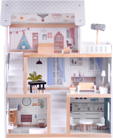 See puidust nukumaja on loodud innustama lapsi loovalt mängima ja lugusid jutustama. Maja pakub esimest tasandit köögi ja vannitoaga, esimest korrust elutoa ja lugemisnurgaga koos muusikanurgaga ning katusekorrust armsa lastetoa ja suure terrassiga. Õrn boho-estetika, illustratsioonid ja puidudetailid loovad rahustava mulje.