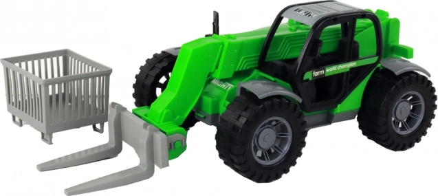 Komplektis on kolm kergesti vahetatavat lisa: kahvel pakkide ja materjali jaoks, transpordikorv ning puidu- või oksahaare. Hõõrdejõu vedu võimaldab lihtsa käivituse – piisab tõukest ja sõitma. Mäng ehitus- ja põllutehnikaga arendab peenmotoorikat, koordinatsiooni ja loovat mõtlemist.