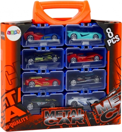 Avasta teel olles lõbu 8 metallist mänguauto komplektiga, mis on hoiustatud praktilises kohvris. Igal autol on oma stiil ja värv, vaheseintega kohver hoiab korra ja teeb kaasaskandmise lihtsaks. Ideaalne väikestele autoarmastajatele alates 3. eluaastast, sertifikaadid CE ja standard EN71.