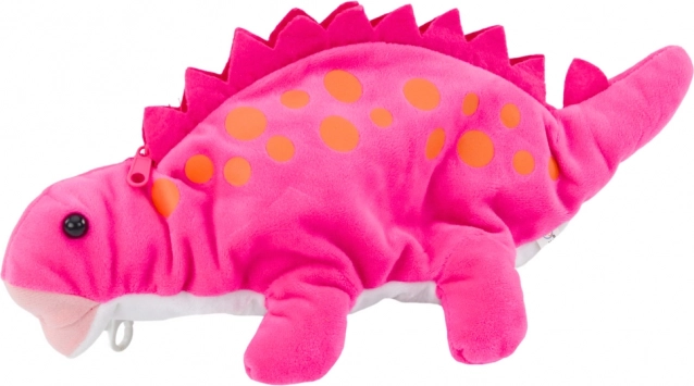 See roosa plüüsdinosaurus rõõmustab lapsi pehme materjaliga ning üllatab nutika panipaigafunktsiooniga. Seljal on kvaliteetne tõmblukk, seega sobib see pinaliks, väikeseks taskuks pisiasjadele või mini-kotikseks salajastele aaretele.