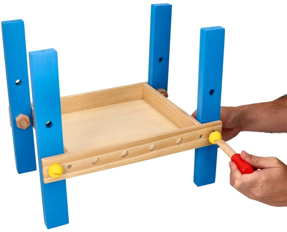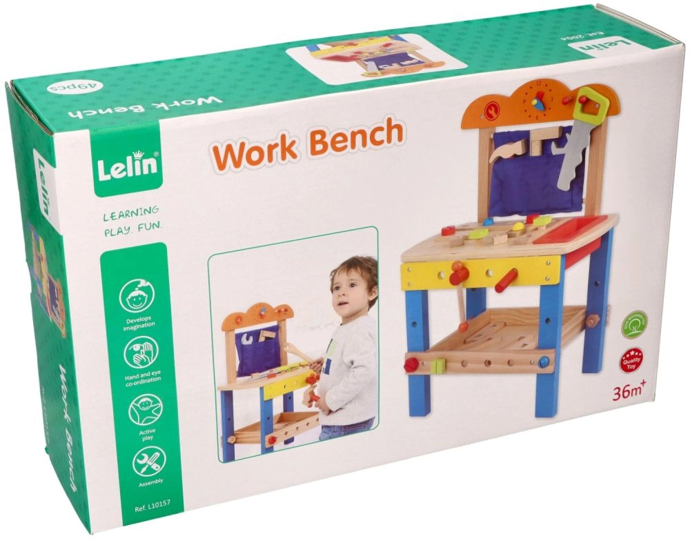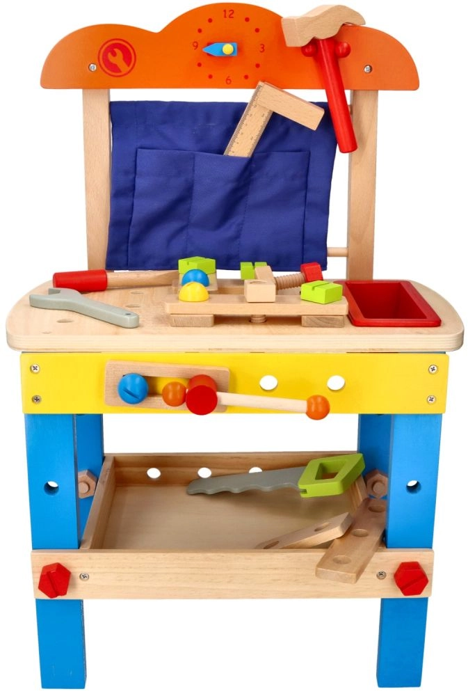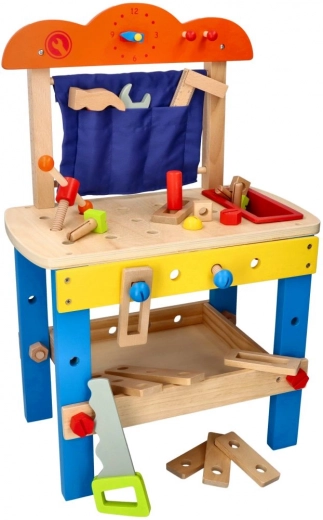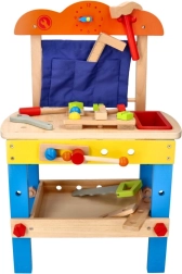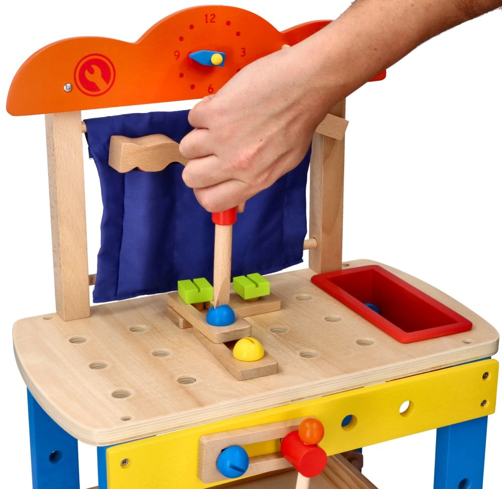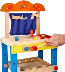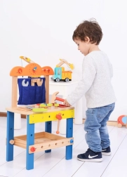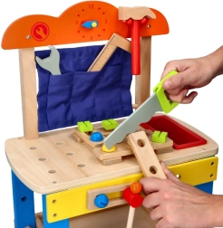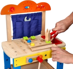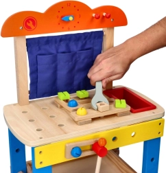 Kompaktsete mõõtmete ja 34 cm tööpinnakõrguse tõttu sobib töölaud suurepäraselt lastetuppa. See on valmistatud puidust ning tuleb koos rikkaliku tööriistakomplektiga, mis soodustab iseseisvust, kannatlikkust ja loogilist mõtlemist.