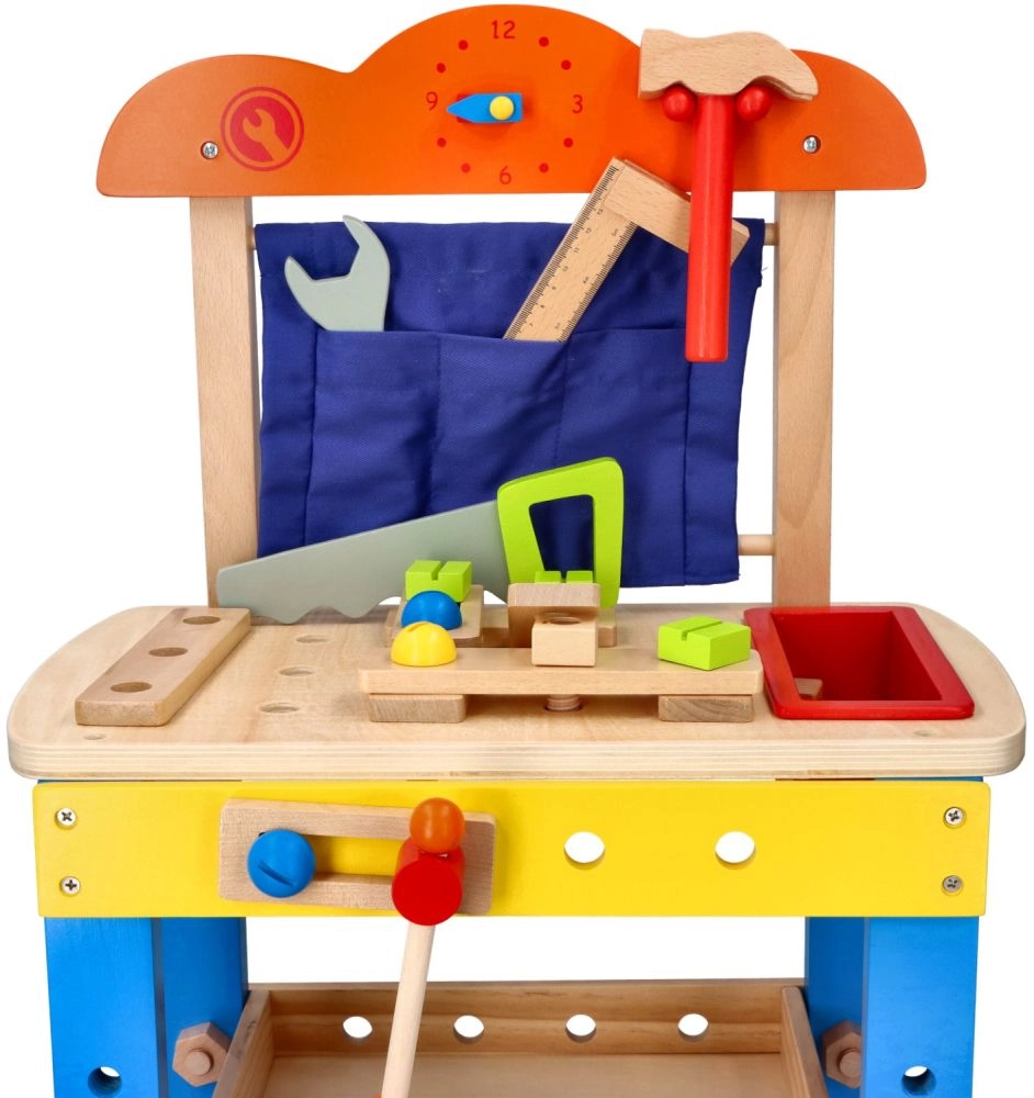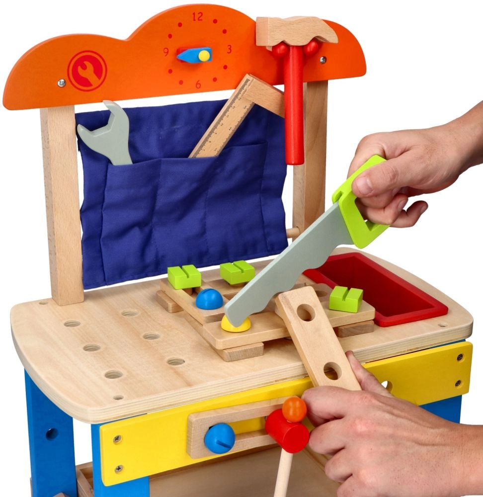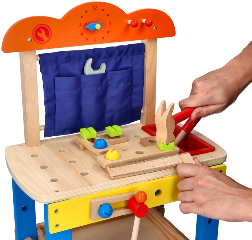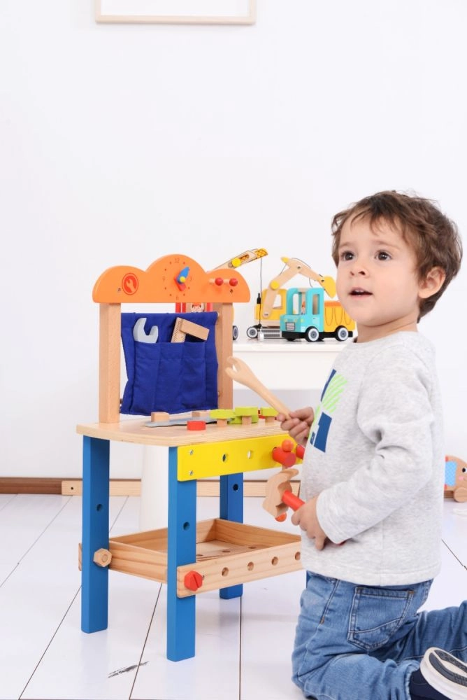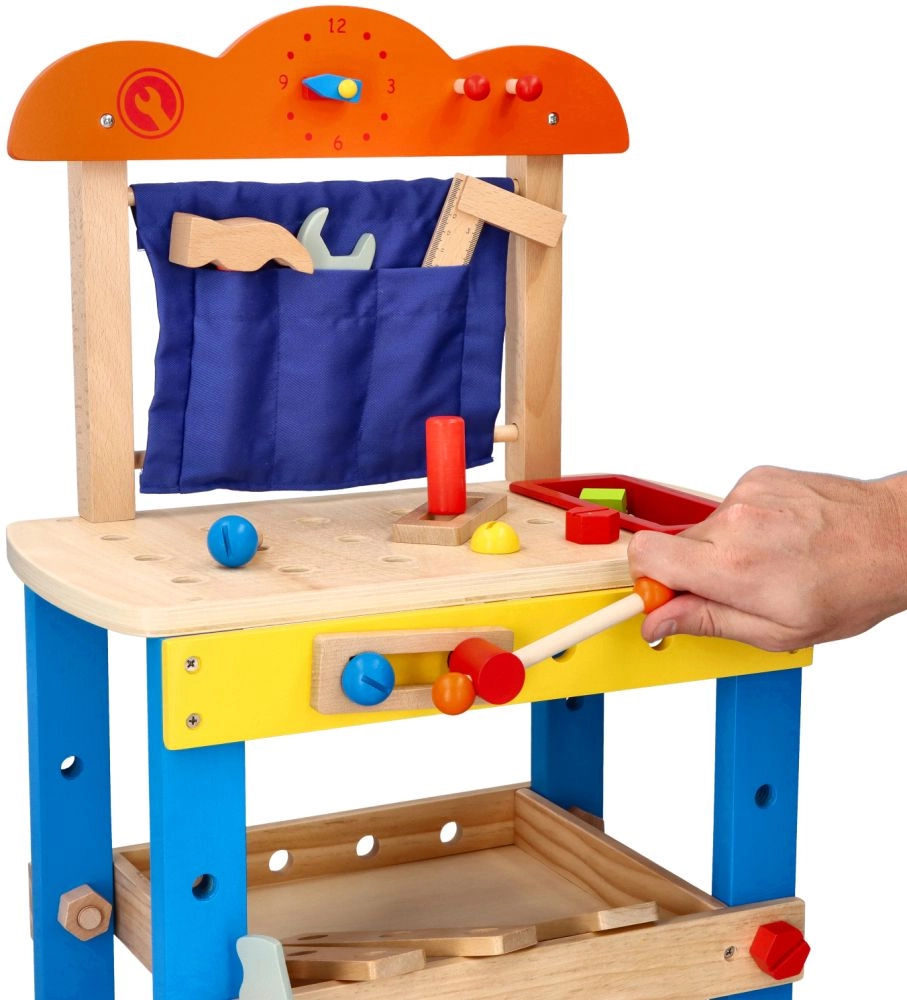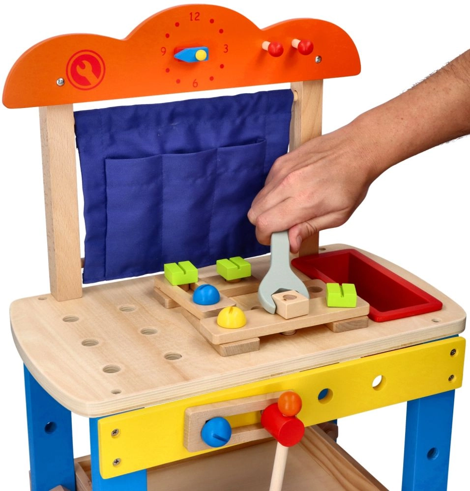 Avastage lõbus ja turvaline mäng lastele alates 3. eluaastast: puidust töölaud koos rikkaliku tööriistakomplektiga toetab loovat mängu, peenmotoorikat ja käe-silma koordineerimist. Stabiilne puidust konstruktsioon, erksad värvid ja rohked lisad innustavad rollimänge ning „meistrimehe” põhitõdede õppimist.