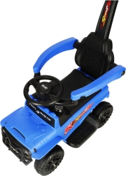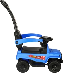 Sinine laste lükatav sõiduk maastikuauto stiilis ühendab böösi ja ohutuse. Tänu juhtimiskäepidemele, kaitsepiiretele ja seljatoele sobib see ideaalselt ühiseks jalutuskäiguks, samal ajal kui valgus- ja heliefektid toetavad lapse kujutlusvõimet ja sõidurõõmu.