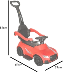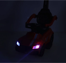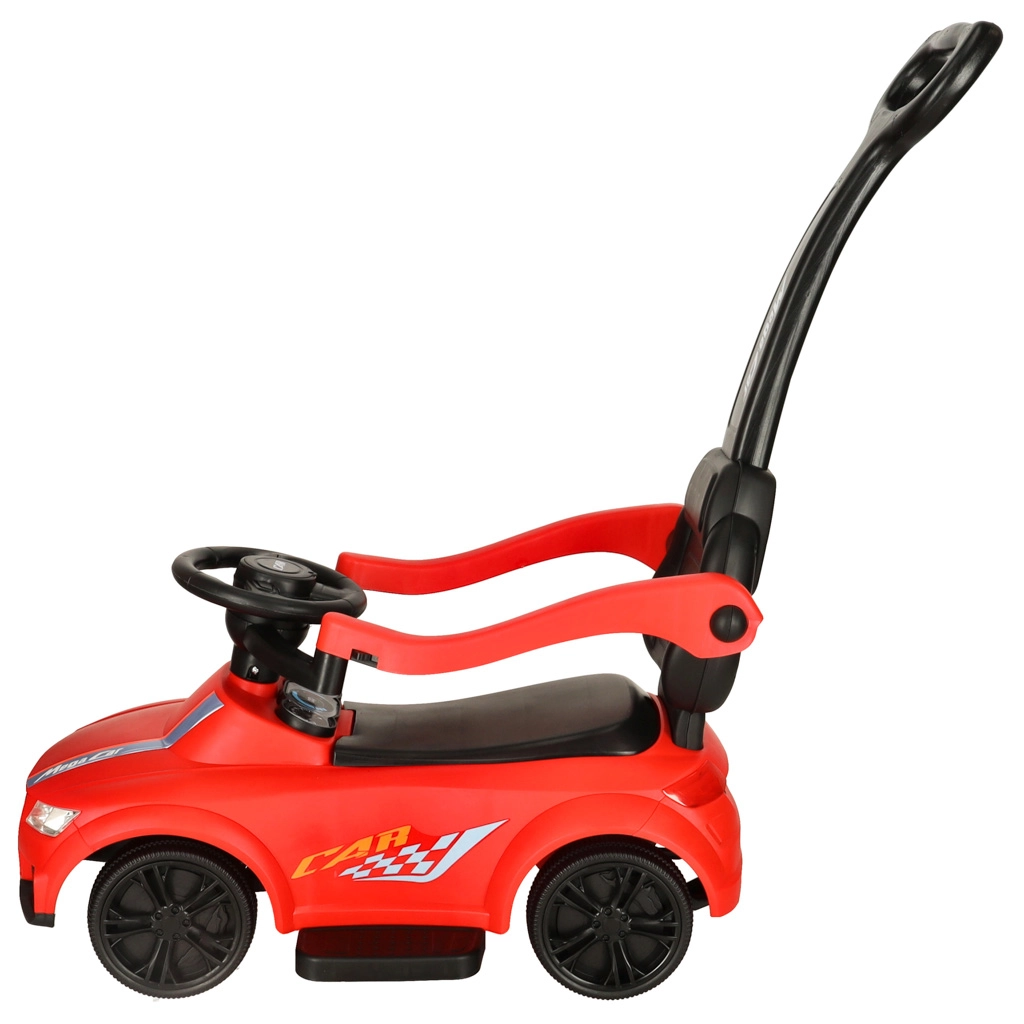 Üks, kaks, kolm… start! See punane sõiduauto lastele alates 12. elukuust sobib suurepäraselt esimesteks iseseisvateks sõitudeks ja jalutuskäikudeks koos vanematega. Integreeritud tuled ja heliefektid (toide 3× AA) lisavad sõidule vürtsi, samal ajal kui mugav iste seljatoe ja külgpiiretega toetab väikeste juhtide kindlust.