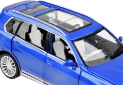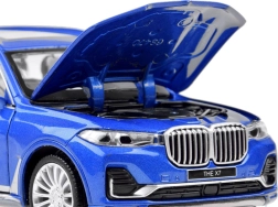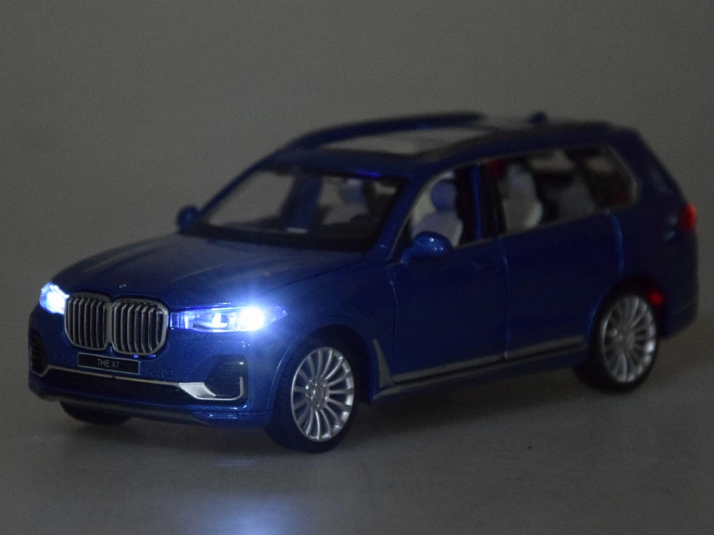 Realistlik metallist BMW X7 linnamaasturi mudel mõõtkavas 1:32 rõõmustab iga väikest autojuhti. Mudelil on avatavad uksed, kapott ja pagasiruum, valgus- ja heliefektid, kummist rattad ning tagasikeriv (pull-back) veosüsteem kiireks sõiduks. Kvaliteetne metallkere ja hoolikas teostus tagavad vastupidavuse ja suurepärase välimuse.