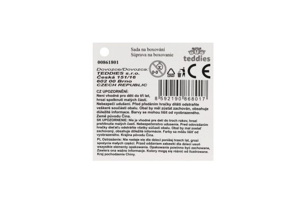 Laste poksikomplekt TEDDIES pakub suurepärast tegevust väikestele sportlastele. Komplektis on poksikindad ja poksilapa, kõik on pakitud praktilisse võrku, mis teeb kandmise ja hoiustamise lihtsaks. Poksitreening on lõbus viis arendada füüsilist vormi ja laste koordinatsiooni.