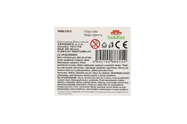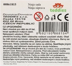Komplekt sisaldab kõiki vajalikke tarvikuid väikestele ninjadele, sh shurikenid ja muud lisad, et igaüks saaks muutuda tõeliseks võitlusmeistriks.