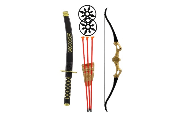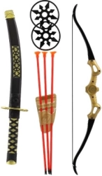 See ninja komplekt sobib suurepäraselt kõigile väikestele seiklejatele, kes tahavad kehastuda tõelisteks ninja sõdalasteks. Komplektis on kõik, mida vajad realistseks ja turvaliseks mänguks, sh detailne mõõk, vibu iminapp-nooledega ning muud lisatarvikud.